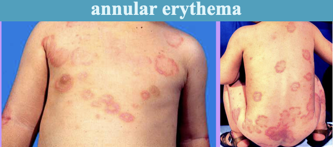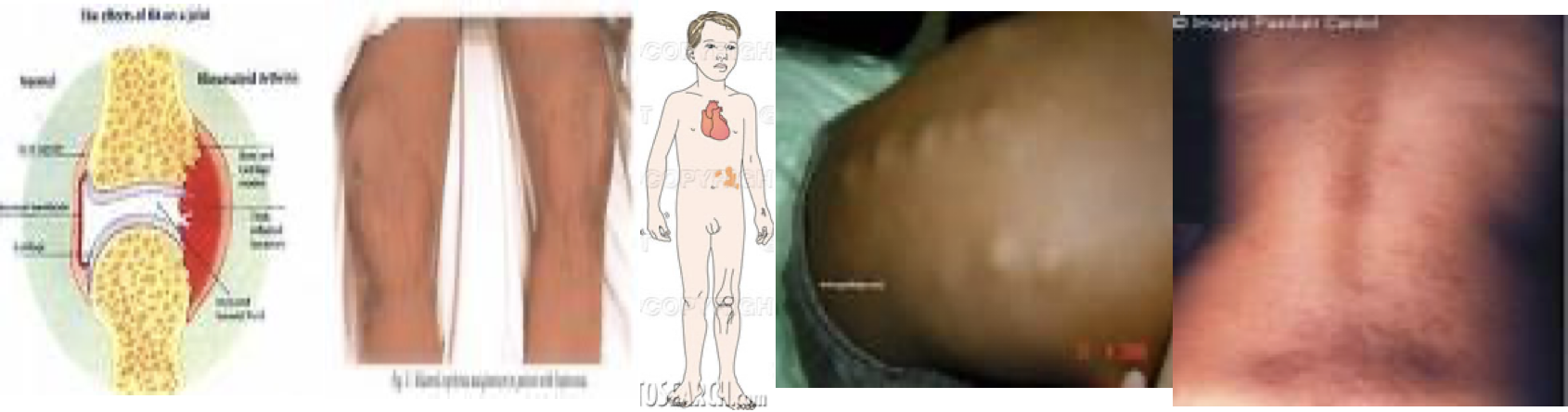 - Subcutaneous nodules, Erythema marginatum (keratin)