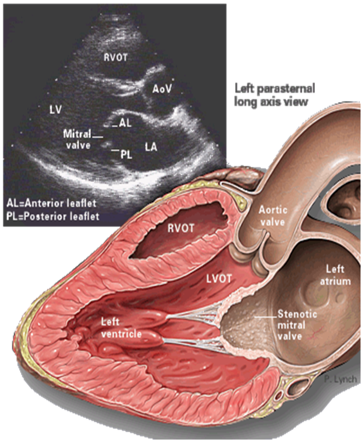 • TTE (Transthoracic echocardiography): best initial test to evaluate the mitral valve and quantify the anatomical extent of the stenosis.
