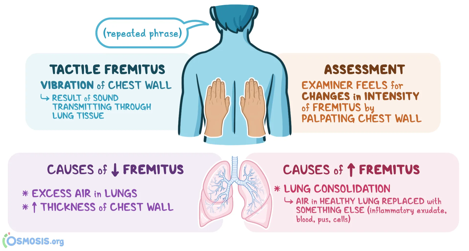 - Symmetry: posteriorly and anteriorly looking for decrease or delayed chest movement during moderate respiration