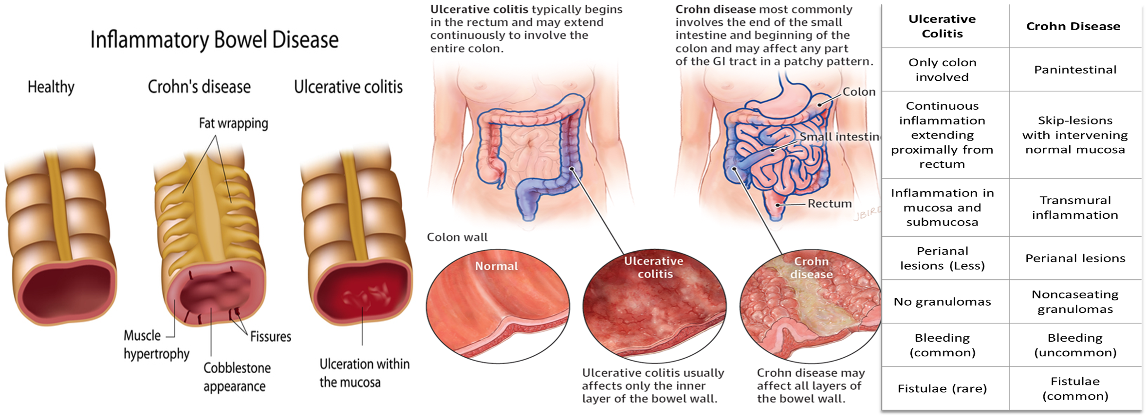 - Smoking (increased risk CD, protective to UC),