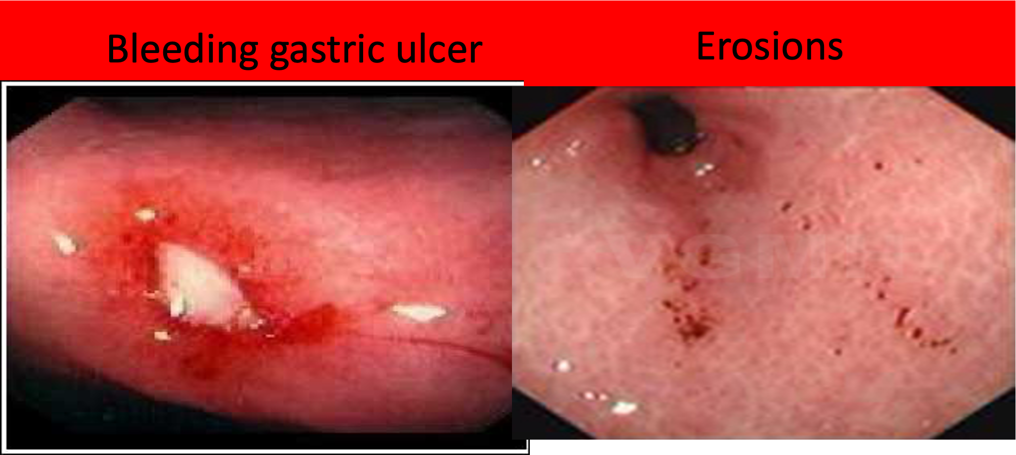 - Can cause “no” symptoms OR erosions, gastritis, ulcers