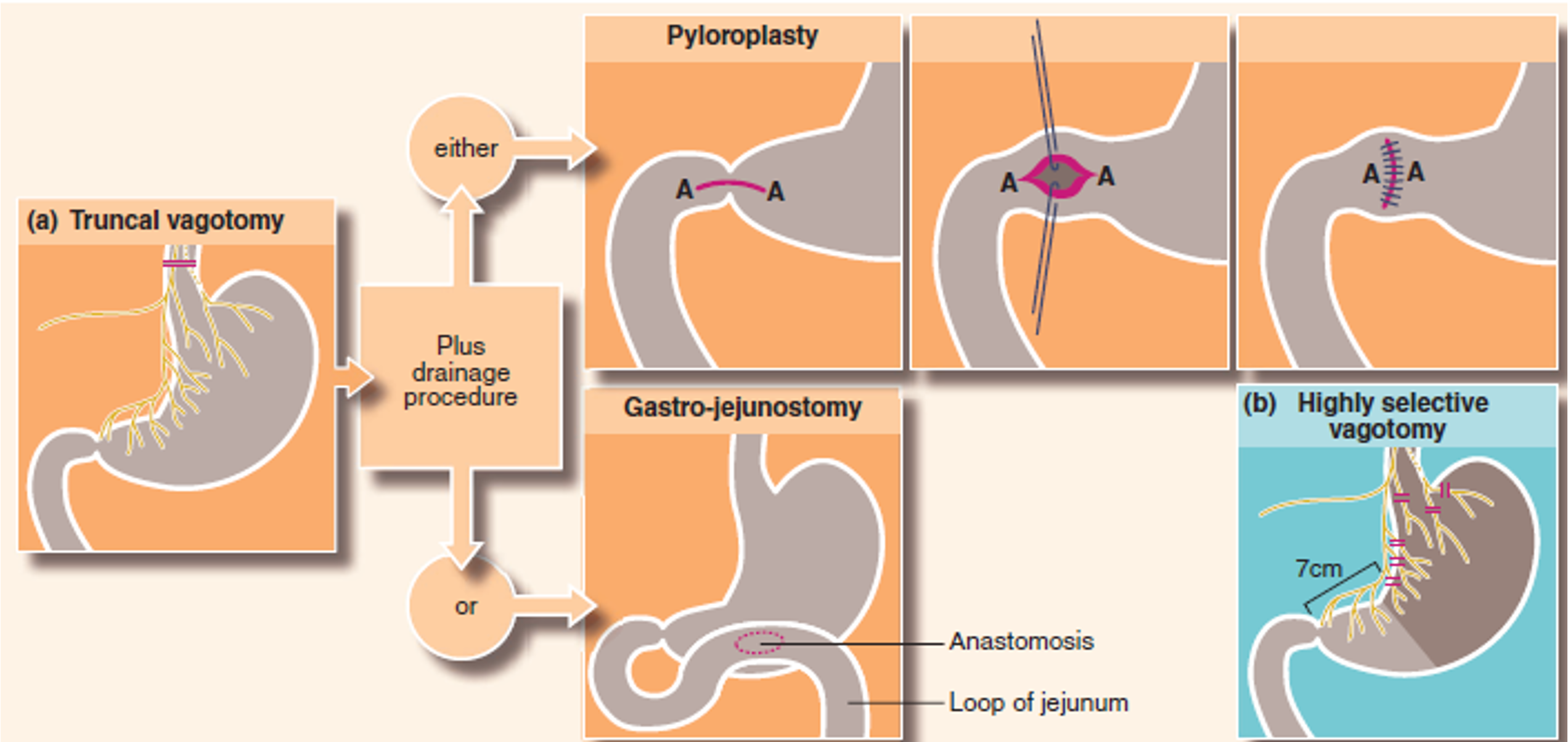 Type of operation: 5. Truncal vagotomy with a drainage procedure (TV + D) e.g. pyloroplasty or gastrojejunostomy.