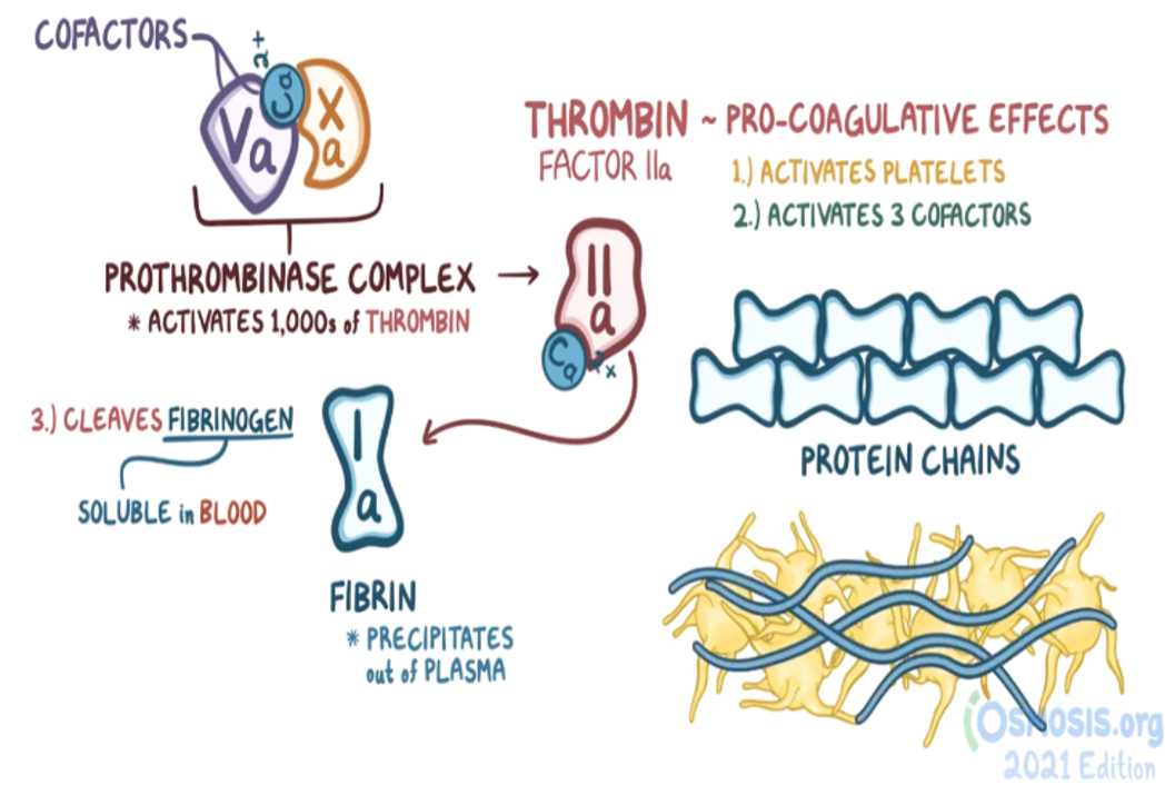 - The prothrombinase complex cleaves factor II (prothrombin) into the active form IIa (thrombin).