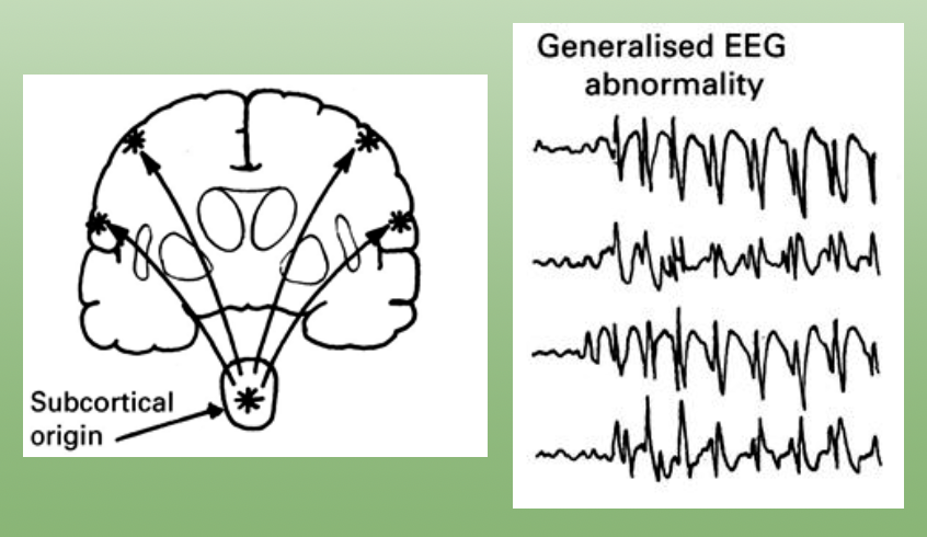Generalized tonic-clonic: Bilateral symmetrical tonic contraction, then bilateral clonic contractions