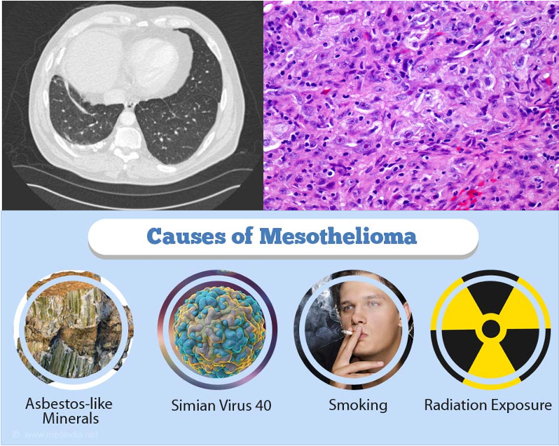 A malignant tumor of the pleura (rarely peritoneum). Usually associated with Crocidolite (blue asbestos) after 20 years of exposure.