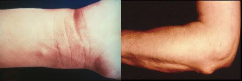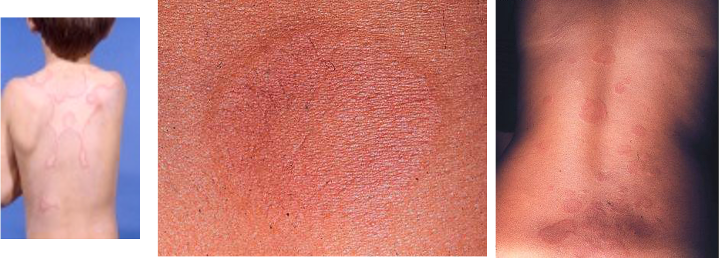 - Unique,transient,looking lesions of 1-2 inches in size