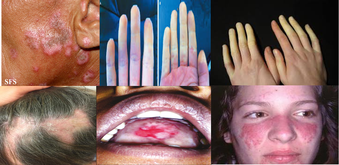 - Discoid Lupus Erythematosus (DLE): (See image)