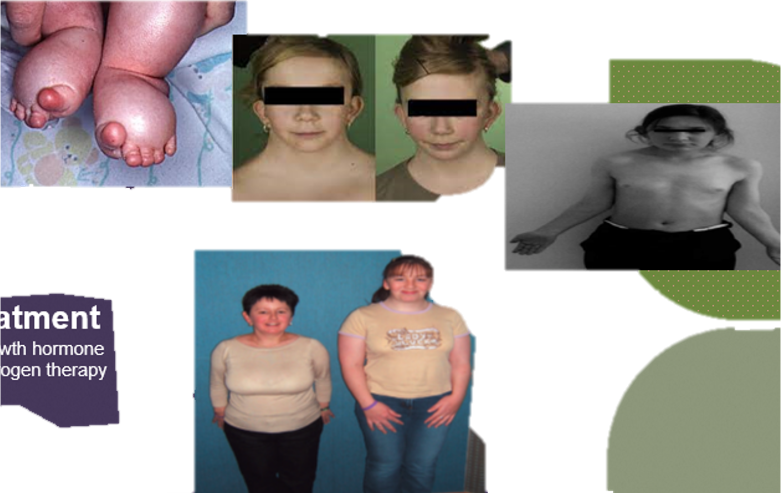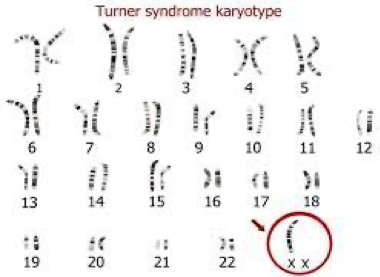 | Turner Syndrome (45X0) | Short stature, lymphedema, shield chest, webbed neck, low posterior hairline, rotated ears | Ovarian dysgenesis, cardiac defects (bicuspid aortic valve, coarctation of aorta), renal anomalies | Absence of one set of genes from the short arm of one X chromosome | Increased risk of hypothyroidism, celiac disease, inflammatory bowel disease, gonadoblastoma | Growth hormone, estrogen therapy | |