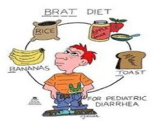 - Diet restrictions such as the BRAT diet (for 2 days only). (bananas,toasts,rice,apple)