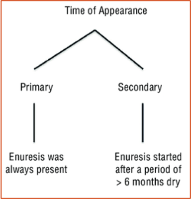 - Combined nocturnal and diurnal enuresis: usually due to congenital urinary tract anomalies.