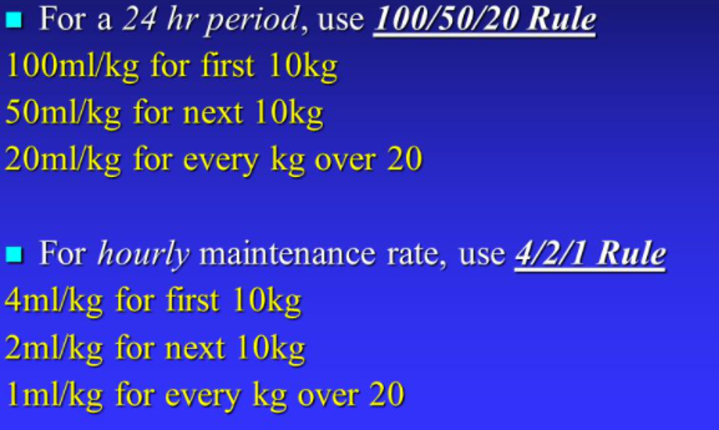 Maximum amount 60 ml/kg for children Maintenance amount - 4. 100 - 2. 50 - 1. 20 per h. per 24h