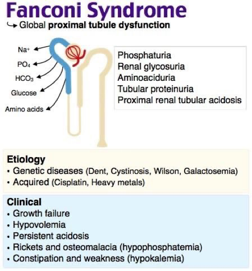disturbed absorption of phosphate in Proximal tubule in fanconi syndrome