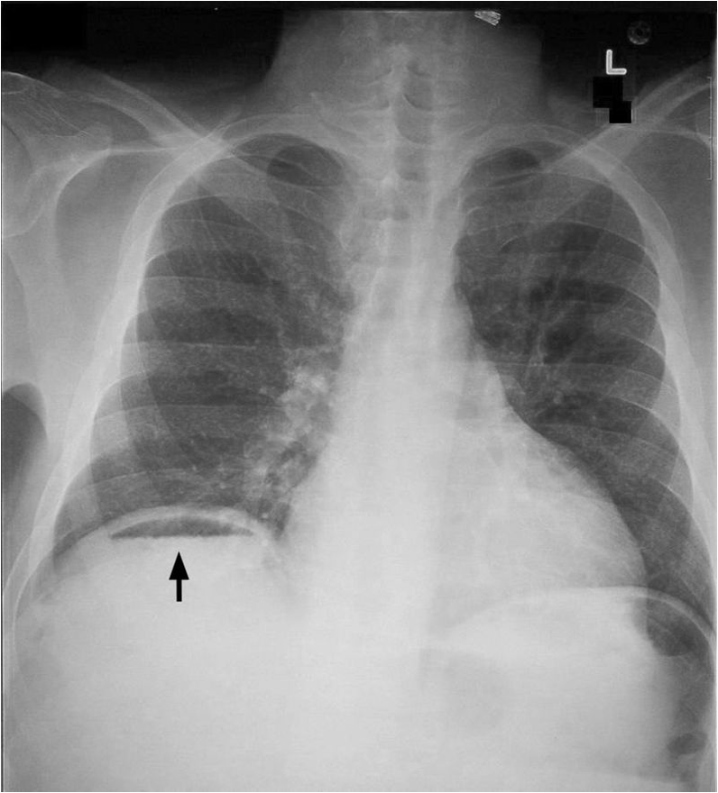 - An erect chest X-ray (eCXR) – for evidence of bowel perforation.
