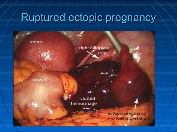 - Rupture ectopic. (ask menstrual period, pregnancy, …)