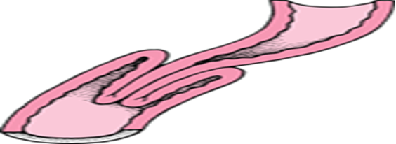 - Interruption of contrast or air at the site of invagination.