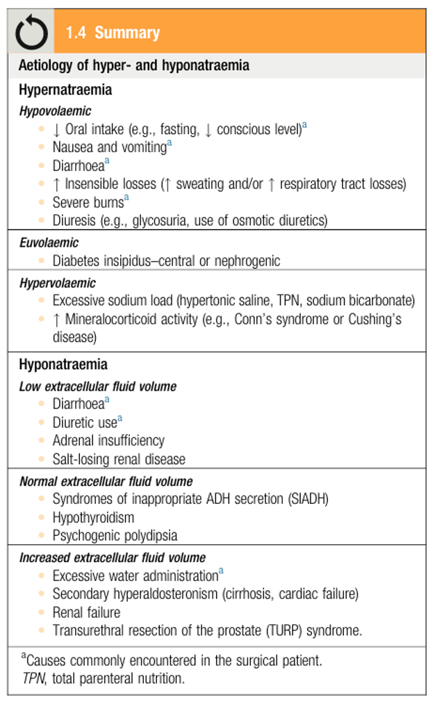 Potassium (K+): Z Read more about hyper/hypokalemia (P.15 in “Principle & Practice of Surgery”)