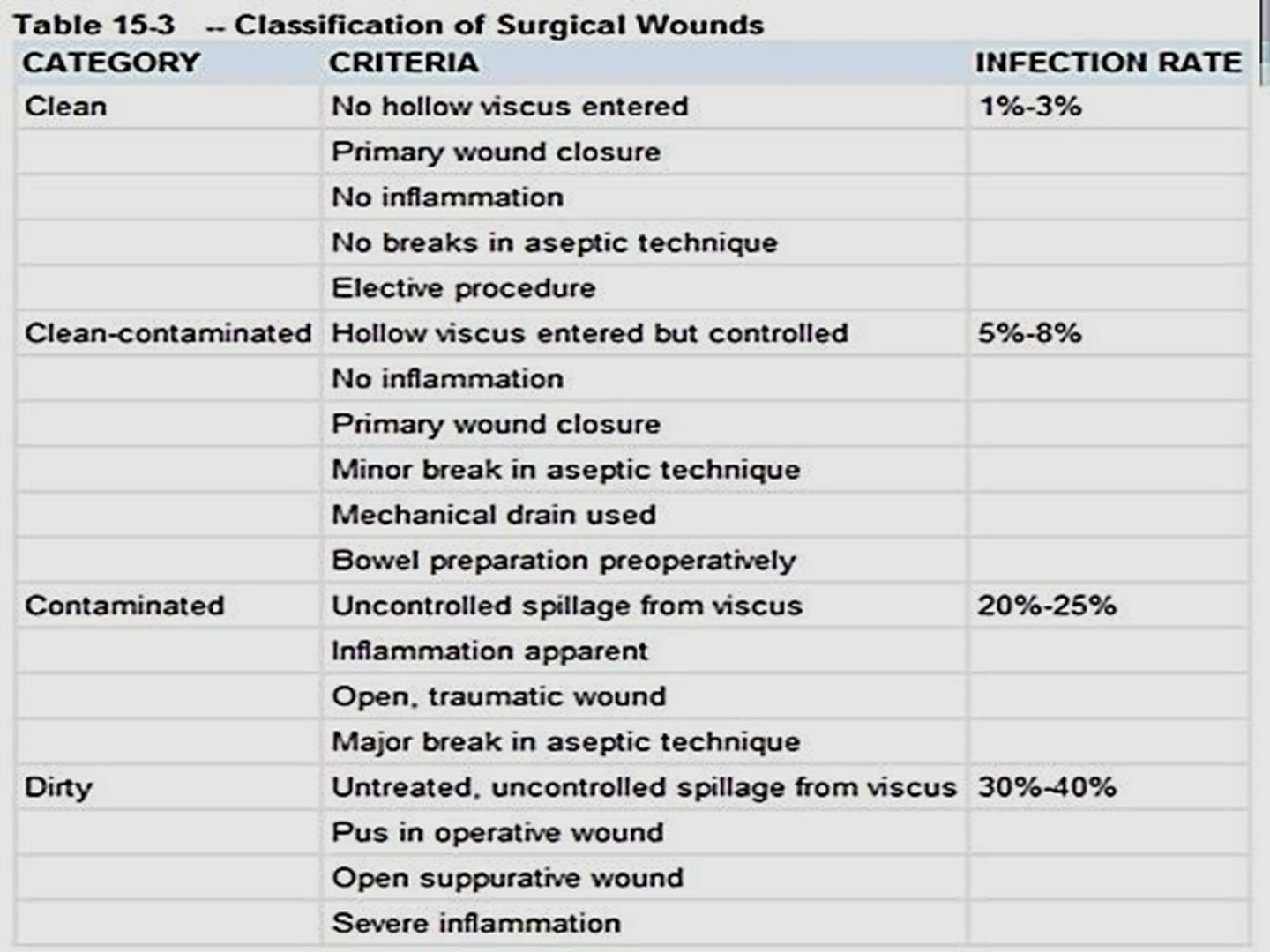 all clean-contaminated procedures; these include penetration of the gastrointestinal tract, whether by penetrating trauma or related to a pathological organ event (e.g., ruptured appendix, perforated colonic diverticulum) prior to the development of clinical peritonitis.