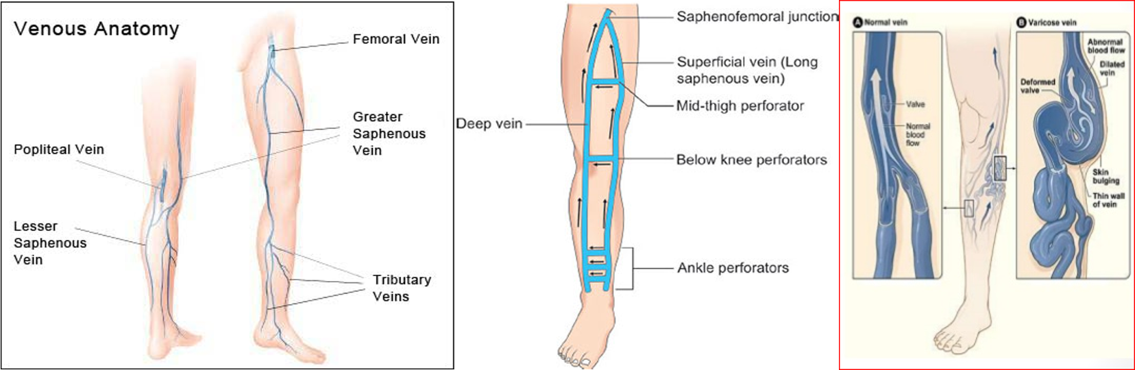 •The GSV- from the dorsal pedal venous arch and courses cephalad and enters the common femoral vein approximately 4 cm inferior and lateral to the pubic tubercle.