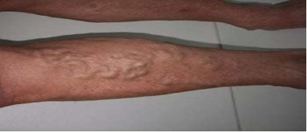 - Pruritus, brownish hyperpigmentation (hemosiderin deposits)